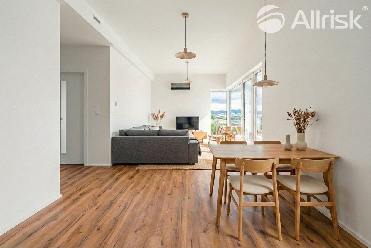 Bydlete v brněnském diamantu. Polyfunkční objekt Allrisk MERIDIEM nabízí moderní byty rozmanitých dispozic a metráží v lokalitě nově vznikající jižní čtvrti Trnitá vzdálené jen 5 minut od centra Brna. V Allrisk MERIDIEM se potkává městský život s prostorem pro relax, sport a každodenní pohodlí. Žijte na adrese, která spojuje centrum města i budoucnost výjimečné lokality. Služby v domě: * posilovna * kavárna Kafec * vinotéka * jógové studio * kosmetické služby * pobočka Allrisk reality & finance V rámci projektu nabízíme byt 2+kk o celkové ploše 58,9 m2, umístěný v 7. nadzemním podlaží. Byt tvoří prostorné zádveří s místem pro úložná řešení, samostatná místnost pro pračku a sušičku a koupelna vybavená sprchovým koutem. Dominantou bytu je hlavní obytná místnost s kuchyňským koutem, která je přirozeně prosvětlená díky velkým proskleným plochám. Velkým benefitem bytu jsou dvě terasy přístupné jak z obytné místnosti, tak z ložnice. Možnost dokoupení parkovacího stání a sklepní kóje za výhodnou cenu. Pro více informací vyplňte kontaktní formulář nebo navštivte naše webové stránky. Rádi Vás přivítáme ve speciální prezentační místnosti v blízkosti stavby. Financování k rezervaci stačí pouze 3 % z kupní ceny, zbývajících 97 % se hradí až po podpisu kupní smlouvy. S financováním i případným pronájmem Vám ráda pomůže skupina Allrisk, která nabízí širokou paletu produktů a služeb. Pokud jste si nevybrali z uveřejněné nabídky, zadejte nám prosím Vaši poptávku a my se pokusíme najít odpovídající nemovitost.