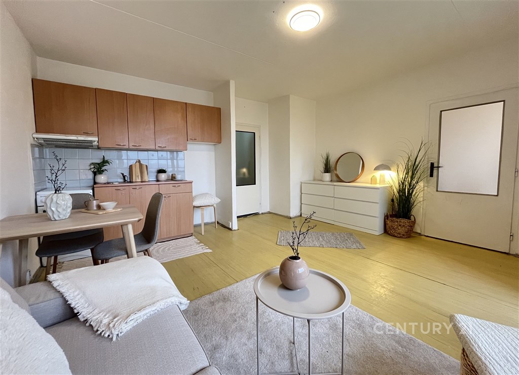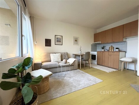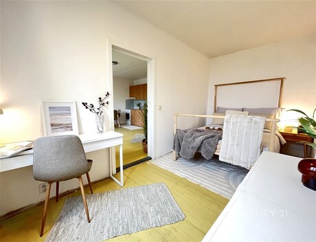 Ve výhradním zastoupení majitele si vám dovolujeme nabídnout příjemný světlý byt o dispozici 2+kk ve 3. patře panelového bytového domu na ulici U Pošty v městské části Brno - Starý Lískovec. Byt má vnitřní podlahovou plochu 40,5 m2 plus balkón cca 4 m2 a sklep (cca 1,5 m2). Z obývacího pokoje spojeného s kuchyňským koutem je vstup na balkón, který nabízí krásný a ničím nerušený výhled do okolí. Kuchyňská linka je vybavená elektrickou troubou se sporákem a digestoří. Předsíň dále poskytuje dostatek místa pro úložné prostory a byt disponuje i komorou. Bytové jádro je v původním stavu, což je ideální příležitost pro rekonstrukci dle vlastních představ. Vytápění je dálkové. Náklady jsou nízké - celkem činí předpis záloh 4.325, Kč/měs. plus zálohy na elektřinu. Dům prošel revitalizací - zateplení a nová fasáda, plastová okna, stupačky nové, výtah, revitalizace střechy a fotovoltaika na střeše. Dům se nachází v energetické třídě C a je zcela bezbariérový. Jde o klidnou lokalitu s kompletní občanskou vybaveností: školy, školky, obchody, zdravotnická zařízení i výborné napojení na MHD. Parkování je možné před domem. Pro více informací nebo domluvení prohlídky kontaktujte makléřku.