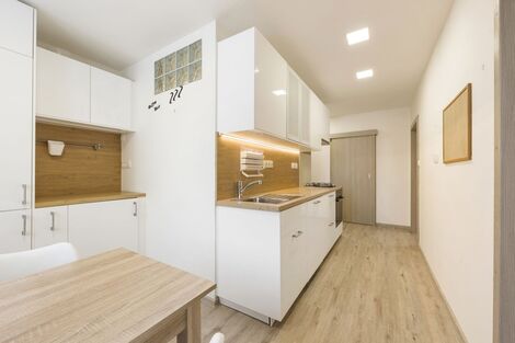 Prodej velmi pěkného bytu 2+1 po rekonstrukci na ul. Pavlovská, Brno - Kohoutovice. Byt je po kompletní rekonstrukci, rozloha 55,8 m2, lodžie, komora, určitě oceníte část. vybavenost bytu, dva sklepy [jeden na patře a další v 1.PP] a velmi klidné místo s dostatkem přírody v okolí. Vybavená kuchyně: myčka, lednice, trouba, plyn. varná deska, digestoř a také pračka. Prostorné a vybavené pokoje: obývací pokoj - sedačka, konferenční stolek, TV stolek, skříňky nad TV stolkem, kuchyň - stůl a židle, šatna - police a šuplíky na míru, chodba - vestavná šatní skříň a koupelna s vanou. V bytovém domě jsou rozvody TV a internetu. Jedná se o velmi pěkné a moderní bydlení. Většina služeb a obchodů je do několika min. od bytu: LIDL, restaurace, lékaři apod.. Ihned u bytového domu je hřiště nebo in-line dráha, na kole nebo pešky se můžete projít v blízkém lese s napojením na Žebětín nebo přehradu. Pro spojení můžete využít trolejbus 37 nebo BUS 50 a 52, zastávka je pouze 150 m od domu. Cena: 6.500.000 Kč + odměna realitní kanceláře ve výši 4% plus DPH. Pro více informací nebo sjednání osobní prohlídky mě neváhejte kontaktovat. Rád vám nemovitost představím osobně. <a href="https://www.eurobydleni.cz/byty/1_kk/praha-8/obec-liben/pronajem/"><strong>Pronájem bytu 1+kk Praha 8, Libeň</strong></a>