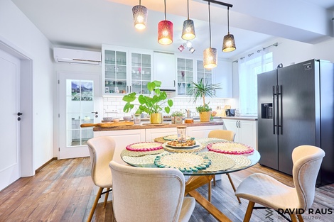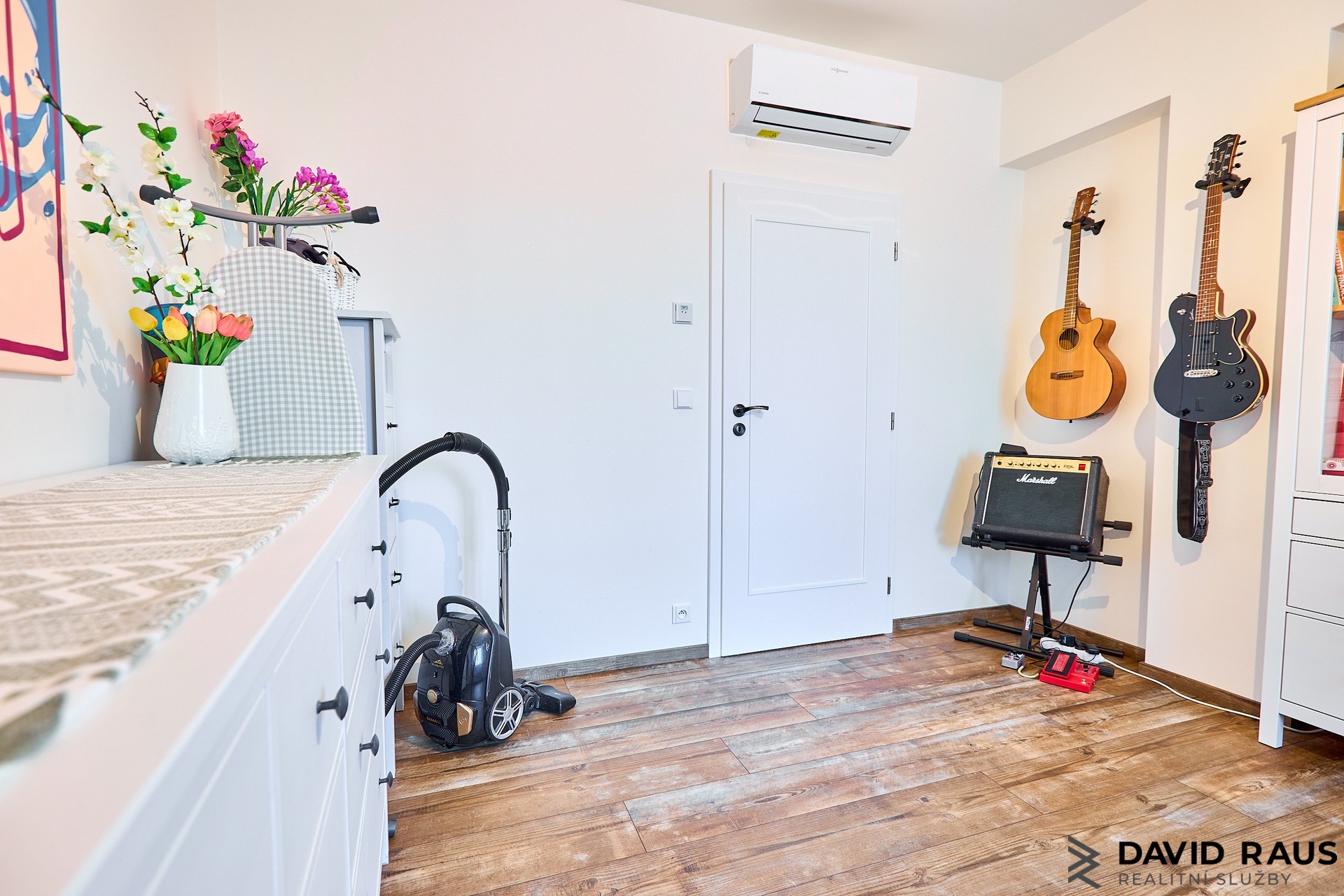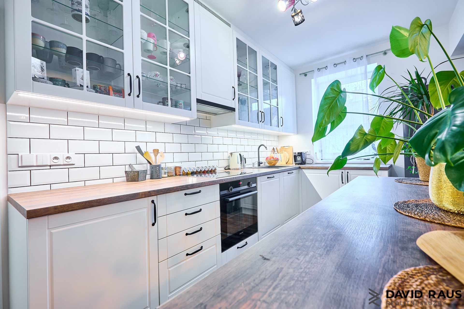 Nabízím k prodeji prostorný byt o dispozici 3+kk a celkové výměře 87,2 m2, který se nachází v 2. nadzemním podlaží bytového domu na ulici 1. května v Brně. Součástí prodeje je dvougaráž, zděný sklep a možnost využívání společných prostor - kočárkárny a terasy. Dispozice bytu Po vstupu do bytu se ocitnete v předsíni o velikosti 7,40 m2, kde jsou vestavěné skříně poskytující dostatek úložného prostoru. Z předsíně se plynule dostanete do všech dalších částí bytu. Nejprve míjíte samostatné WC o výměře 1,50 m2 a následně vstupujete do koupelny o velikosti 7,20 m2. Koupelna je vybavena vanou a dvěma samostatnými umyvadly umístěnými na desce vyrobené na míru, pod kterou se nachází praktický úložný prostor. Velkou výhodou je také okno umístěné ve výšce přibližně 1,80 m, které zajišťuje přirozené světlo i možnost větrání. Prosklenými dveřmi vstoupíte do hlavního obytného prostoru, který tvoří obývací pokoj s kuchyňským koutem o výměře 32,6 m2. Kuchyňská část je přirozeně oddělena designovým pultem navazujícím na kuchyňskou linku, což vytváří funkční a přehledné uspořádání prostoru. Součástí kuchyně je také samostatná americká lednice s vestavěným výrobníkem ledu. Z obývacího pokoje vedou dveře do dvou samostatných pokojů. Ložnice o velikosti 16,50 m2 je rozlohově větší místností a nabízí přímý vstup na balkon. Druhý pokoj o výměře 14,60 m2 lze využít jako dětský pokoj, pracovnu nebo pokoj pro hosty. Technické informace a vybavení V obývacím pokoji i v obou pokojích je instalována klimatizace, která zajišťuje komfort během letních měsíců. Vytápění je řešeno podlahově. Byt je vymalován bílou barvou a ve všech obytných místnostech je položena vinylová podlaha v dekoru dřeva, která působí nadčasově a příjemně. Garáž a další prostory K bytu náleží prostorná dvougaráž s elektrickými vraty na dálkové ovládání o šířce 4,96 m, hloubce 5,60 m a výšce 3,198 m, přičemž zadní část garáže je od poloviny rozšířena na 5,24 m. Součástí prodeje je také zděný sklep. V domě je k dispozici kočárkárna s umyvadlem a společná terasa v posledním patře domu. Byt nabízí praktické uspořádání, dostatek prostoru, vlastní parkování a příjemnou atmosféru. Díky dispozici 3+kk je vhodný pro rodinu i pár, kteří hledají pohodlné bydlení v Brně. Měsíční náklady (2 osoby) Fond oprav: 872 Kč Voda: 600 Kč Elektřina společné prostory + sklepy: 100 Kč Elektřina výtah: 200 Kč Správa domu: 200 Kč Úklid: 200 Kč Provoz SVJ a revize: 100 Kč Celkem zálohy SVJ: 2 272 Kč / měsíc Elektřina v bytě (vytápění + běžná spotřeba) se hradí samostatně dle vlastní smlouvy s dodavatelem. Doporučuji osobní prohlídku, při které nejlépe oceníte dispozici, prostor a celkovou atmosféru bytu. Základní informace Dispozice: 3+kk Celková plocha bytu: 87,2 m2 Podlaží: 2. nadzemní podlaží Vytápění: podlahové Klimatizace: ano Balkon: ano Sklep: ano (zděný) Garáž: dvougaráž s elektrickými vraty Veškerá právní servis zajištěn. Nabízím možnost zajištění financování. Pro více informací mě kontaktujte.