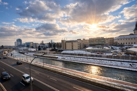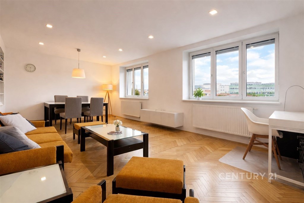 Nabízíme k pronájmu plně zařízený, velice klidný a moderně řešený byt 2+1 o podlahové ploše 71 m2, situovaný ve 3. patře zatepleného domu v atraktivní lokalitě Brno - Poříčí. Byt prošel výrazným upgradem po posledním nájemci, většina vybavení je nová nebo repasovaná. Díky zateplení budovy, novým oknům a předokenním žaluziím je byt velmi dobře tepelně i akusticky izolován, hluk z ulice zde prakticky neuslyšíte. Dispozice bytu nabízí velkorysý obývací pokoj o velikosti 34 m2, samostatnou kuchyni o ploše 12 m2, ložnici o velikosti 12 m2, prostornou koupelnu s vanou (10 m2) a předsíň (3 m2). Velký obývací prostor poskytuje dostatek místa nejen pro pohodlné bydlení, ale i pro práci z domova. Součástí vybavení jsou bezpečnostní vstupní dveře, plně vybavená kuchyňská linka (varná deska, elektrická trouba, myčka, vestavná lednice, mikrovlnná trouba, odsavač par), pračka/sušička a vestavné skříně s dostatkem úložného prostoru. Byt má odhlučněné stěny a částečně vyhřívanou podlahu. Vytápění a ohřev vody zajišťuje elektrický kotel; díky zateplení domu nejsou nároky na vytápění vysoké, přesto je vhodné dbát na úsporné využívání energie. K bytu náleží nově vybudovaná sklepní kóje o velikosti cca 2 m2. Internetové připojení v domě zajišťuje Vodafone. Velkou předností je samotná lokalita. Byt se nachází v širším centru města s výbornou pěší dostupností MHD (zastávky Poříčí / Hybešova) i kompletní občanské vybavenosti včetně supermarketů Billa a Albert, restaurací a služeb. Za domem se nachází klidný park ve vnitrobloku a parková úprava kolem řeky Svratky, která nabízí příjemné prostředí pro procházky i sport. V pěší vzdálenosti jsou také Pisárecké údolí, Riviéra, výstaviště BVV, nemocnice i hala Rondo. Byt poskytuje velmi pěkné výhledy na zeleň, park a okolí řeky. Byt je vhodný pro jednotlivce nebo pár, kteří hledají prostorné a klidné bydlení v centru města s výbornou dostupností a kvalitním zázemím.