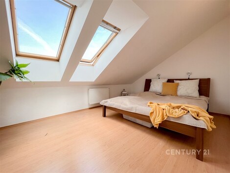 Prostorný byt o dispozici 4kk a rozloze 126 m2. Podlahová plocha bytu 122 m2 a terasa s krásným výhledem na Petrov a Špilberk. Byt je ve 4.patře bytového domu bez výtahu a je orientován dvěma pokoji na východ a další místnosti, jako obývací pokoj, kuchyně, koupelna a ložnice je orientovány na jihozápad. Prostor se rozléhá přes celé podlaží domu a nabízí tak prostorové benefity, jako malou půdu pro uskladnění sezónních věcí, technickou místnost s plynovým kotlem a pračkou a prostornou komoru. Jedná se o prostorově opravdu velkorysý byt, kde nebude mít problém větší rodina se spoustou osobních věcí. Terasa náležící k bytu je přímo přístupná z obývacího pokoje a nabízí možnost vychutnat si kávu či snídani na čerstvém vzduchu. Všechny pokoje jsou krásně světlé a prostorné. Koupelna je vybavena rohovou vanou a samostatným sprchovým koutem. WC je pak umístěno mimo koupelnu. Rozměry pokojů: Obývací pokoj s kuchyní 37 m2 Podkrovní pokoj 15 m2 Pokoj 17 m2 Ložnice 21 m2 Komora 8 m2 Koupelna 7 m2 Technická místnost 1,8 m2 Předsíň a chodba 15,2 m2 Terasa 4 m2 Dalším benefitem bytu jsou nízké provozní náklady, kde vodné a stočné s fondem oprav vychází na 3 420 Kč a zálohy na plyn zajišťující vytápění bytu, ohřev vody a vaření jsou 2100 Kč a elektřina 1500 kč. V bytě je nový průtokový ohřívač vody a střešní okna. K bytu dále náleží možnost využívat kočárkárnu v přízemí domu a bezproblémové parkování na ulici či bezprostředním okolí domu. Co se týče internetu a televize., je možno využívat služeb NETBOXU i Vodafonu, které jsou v domě dostupné.