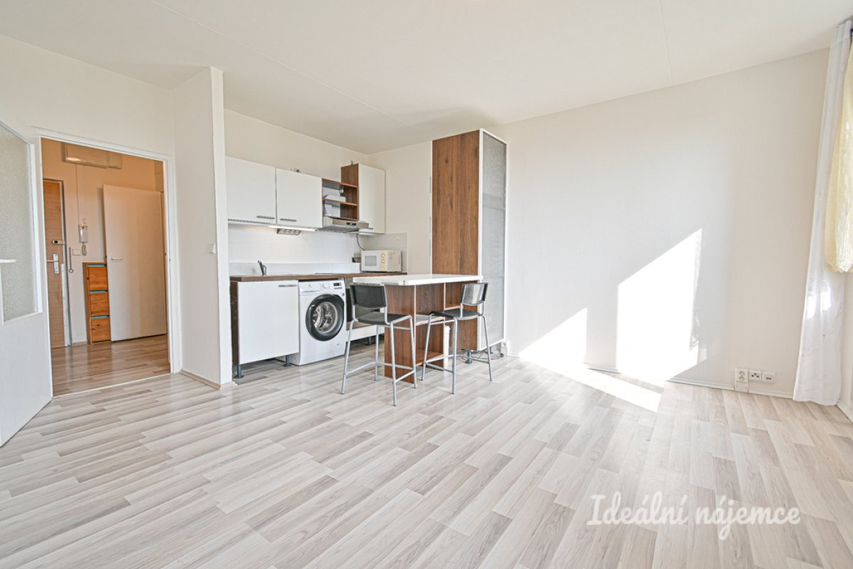 K dlouhodobému podnájmu nabízíme krásný prosluněný moderní byt o dispozici 1+kk v lokalitě Brno-Židenice. Byt o celkové výměře 33 m2 se nachází ve čtvrtém podlaží panelového domu s výtahem. K bytu náleží sklep. Byt se nabízí částečně vybavený. Kuchyně disponuje lednicí, elektrickou troubou, varnou deskou, pračkou a digestoří. K dispozici je barový pult s židlemi, zbytek místnosti zůstane prázdný. V koupelně sprchový kout, umyvadlo se skříňkou a zrcadlem a oddělená toaleta. Chodba je vybavena prostornou šatní skříní. V okolí domu najdeme restaurace, obchody, základní a mateřskou školu, lékárnu, posilovnu atd. Pět minut chůze od domu je vzdálená tramvajová zastávka. Byt je volný k nastěhování ihned.