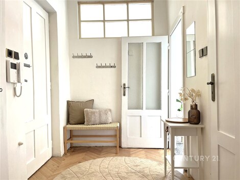 Nabízíme Vám k prodeji krásný světlý byt o dispozici 3+kk ve 2. patře cihlového domu v klidné části ulice Zemědělská v Brně - Černých Polích. Byt má vnitřní podlahovou plochu 60 m2 plus 6 m2 lodžie, ze které je nádherný výhled do zcela klidného vnitrobloku. Balkonové dveře a okno vedoucí na lodžii má venkovní žaluzie. Byt se skládá ze vstupní chodby, obývacího pokoje s kuchyňským koutem a dvou pokojů, přičemž pokoje jsou neprůchozí. V koupelně je vana, toaleta je samostatná. Součástí bytu je kuchyňská linka se spotřebiči (varnou deskou, troubou, myčkou a lednicí s mrazákem). K bytu náleží sklep o výměře 2 m2. Okna jsou nová dřevěná s trojskly včetně dřevěných parapetů. Podlahy tvoří parkety, v jednom z pokojů je koberec. V domě je možné využívat společnou zahradu. Vytápění bytu a ohřev teplé vody je zajištěn vlastním plynovým kotlem a novými radiátory. Vstup do domu je zajištěn čipem a opatřen videotelefonem. Dům je po revitalizaci - nově zbudované lodžie, zateplení, fasáda, nové sklepy a nové stupačky. Energetický štítek má hodnotu B. Jde o velice žádanou lokalitu s veškerou občanskou vybaveností, s rychlým přístupem do centra (zastávka tramvaje Zemědělská) a přitom v klidné části města. Je zde i možnost převzít hypotéku s velice výhodným úrokem. Prohlídky jsou možné po domluvě s makléřkou.