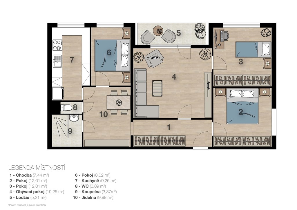 Hledáte ideální rodinné bydlení, kde se snoubí prostor, moderní design a klidná lokalita? Nabízíme Vám k prodeji výjimečný, kompletně zrekonstruovaný byt na ulici Elplova, Brno - Líšeň. Byt se nachází v 1. NP a díky své promyšlené dispozici nabízí komfortní zázemí i pro větší rodinu. Hlavní přednosti bytu: Velkorysá užitná plocha bytu 84 m2 + zasklená lodžie 5,2 m2 pro Váš odpočinek. Byt prošel postupnou rekonstrukcí: nová kuchyňská linka včetně vestavných elektrospotřebičů, kde je prostor také na pračku a sušičku, koupelna se sprchovým koutem s odtokovým žlabem, samostatná toaleta, zasklená lodžie, nová vinylová podlaha v místnostech. V bytě je také pamatováno na úložné prostory: Velká vestavěná skříň se nachází podél celé chodby a úložný prostor je také ve sklepní kóji 4 m2. Využívat můžete také společnou kolárnu/kočárkárnu, kde je rovněž dostatek úložného místa. Dispozice a interiér: Byt je řešen velmi prakticky, přičemž srdcem domova je centrální chodba, ze které se dostanete do všech částí bytu. ►Obývací pokoj (19,25 m2) je světlý prostor s přímým vstupem na zasklenou lodžii, která slouží jako oáza klidu s výhledem. ►Kuchyně (9,28 m2) disponuje novou moderní linkou ve tvaru "U" a je vybavená vestavnými spotřebiči (indukční varná deska, vestavná lednice kombinovaná s mrazákem, myčka, filtrová digestoř). ►Jídelna (9,88 m2) unikátní propojovací prvek mezi kuchyní a obývacím pokojem, ideální pro společné rodinné večeře. ►Ložnice (12,01 m2) ložnice s manželskou postelí a šatní skříní. ►Dětský pokoj / Pracovna (12,01 m2). Prostorný pokoj s variabilním využitím. ►Pracovna/dětský pokoj (8,02 m2) ideální jako hostinský pokoj nebo další dětský pokoj. ►Zrekonstruovaná koupelna se sprchovým koutem a samostatné WC. Podívejte se na přiložené fotografie, půdorys a video prohlídku, které vám byt přiblíží ještě lépe. Náklady na bydlení při 4 členné rodině jsou 6 000,Kč včetně fondu oprav. PENB v kategorii C (úsporná budova). Bytový dům je zateplen, nové dlažby, výtah a nová střecha. Vytápění je ústřední - Teplárny Brno, v pokojích jsou radiátory. Brněnská Líšeň je jednou z nejoblíbenějších lokalit pro bydlení. Ulice Elplova nabízí vše na dosah školy, školky, obchody i restaurace v docházkové vzdálenosti. Skvělá dostupnost. Rychlé spojení do centra Brna i na dálniční tepny. Příroda za rohem: V blízkosti najdete dostatek zeleně pro procházky a sportovní vyžití. Tento světlý a vzdušný byt je připraven ke koupi a to bez nutnosti dalších investic. Zaujala vás tato nabídka? Neváhejte mě kontaktovat a domluvte si prohlídku svého nového domova ještě dnes!