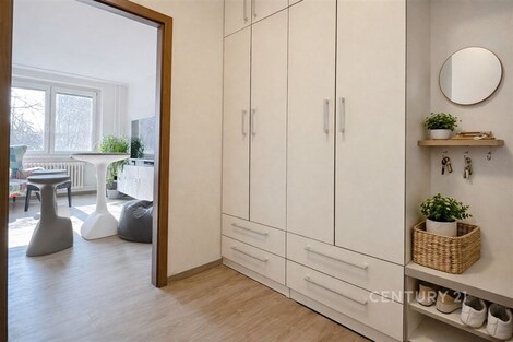 Exkluzivně nabízíme ke koupi prakticky řešený byt 1+kk o ploše 31 m2 v klidnější části sídliště Vinohrady v BrněŽidenicích. Byt se nachází v méněpodlažním bytovém domě obklopeném zelení a představuje zajímavou příležitost jak pro vlastní bydlení, tak i jako investici. Byt je díky jižní orientaci příjemně světlý po většinu dne. Dispozici tvoří hlavní obytný pokoj s kuchyňským koutem, předsíň, samostatné WC a koupelna. Velkou předností bytu jsou prakticky řešené úložné prostory v předsíni, kde se nachází vestavěná skříň po celé délce stěny. Díky uspořádání a blízkosti koupelny může tato část bytu částečně suplovat funkci šatny, což zvyšuje komfort bydlení a pomáhá udržet obytný prostor přehledný. V bytě, který prošel v roce 2014 rekonstrukcí, je zděné jádro a rozvody elektřiny jsou provedeny v mědi. K bytu náleží také sklepní kóje. Bytový dům byl postaven v 80. letech a dokončen přibližně v roce 1989. V roce 2009 prošel revitalizací. Výhodou je také dobrá dopravní dostupnost - v docházkové vzdálenosti se nachází zastávky MHD s rychlým spojením do centra Brna. V okolí je běžná občanská vybavenost. Z důvodu splnění zákonné povinnosti uvádíme energetickou třídu G. Pro více informací kontaktujte makléře.