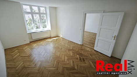 Nabízíme pronájem velmi prostorného bytu 3,5+1 s balkónem 1m2 + sklep 4m2, po kompletní rekonstrukci, která proběhla v roce 2025, CP bytu 100 m2 + balkón 1m2 + sklep 4m2, ulice Grohova, Brno - střed. Byt se nachází ve 2. nadzemním podlaží cihlového domu s novým výtahem. Orientace bytu je na J (3x pokoj) a na S (kuchyň, půl-pokoj/pracovna, balkón). Dispozice: velmi prostorné pokoje 23m2, 22m2 a 21m2, kuchyň 12m2, komora 2m2, půl-pokoj/pracovna 4m2 se vstupem na balkón 1m2, prostorná vstupní hala/chodba 13m2, koupelna s vanou 4m2, samostatné WC 1m2, sklepní kóje 4m2 v 1.PP. Bytová jednotka je kompletně a vkusně zrekonstruovaná - repasovaná původní dřevěná podlaha, dlažba, PVC, plastová okna, repasované původní dveře a zárubně, starší ale pěkná kuchyňská linka s vestavěnými spotřebiči (el. trouba, el. varná sklokeramická deska, digestoř, myčka), kompletně nová elektroinstalace, rozvody topení, vody a odpadů. Bytový dům je celkově ve výborném stavu - fasáda, výtah, chodby atp.. Byt má vlastní měřidla energií (voda, el., plyn), topení a ohřev vody je řešen vlastním novým plynovým kondenzačním kotlem. Zaveden kabel/internet Vodafone (není v ceně služeb - nájemce řeší samostatnou smlouvou s poskytovatelem). Výborná dostupnost do historického centra města (10 min. pěšky), v blízkosti veškerá občanská vybavenost - nákupní střediska (Lidl, Albert, Billa), zastávky MHD, úřady, zdravotnická zařízení, školy, školky, divadla, kina, sportovní hřiště (areál Sokol Brno I a další), rozlehlé parky (Lužánky, Tyršův sad) i cyklostezka až do Vídně;). Volné od 1.4.2026. Pronajímatel požaduje vratnou kauci. BYT č.4