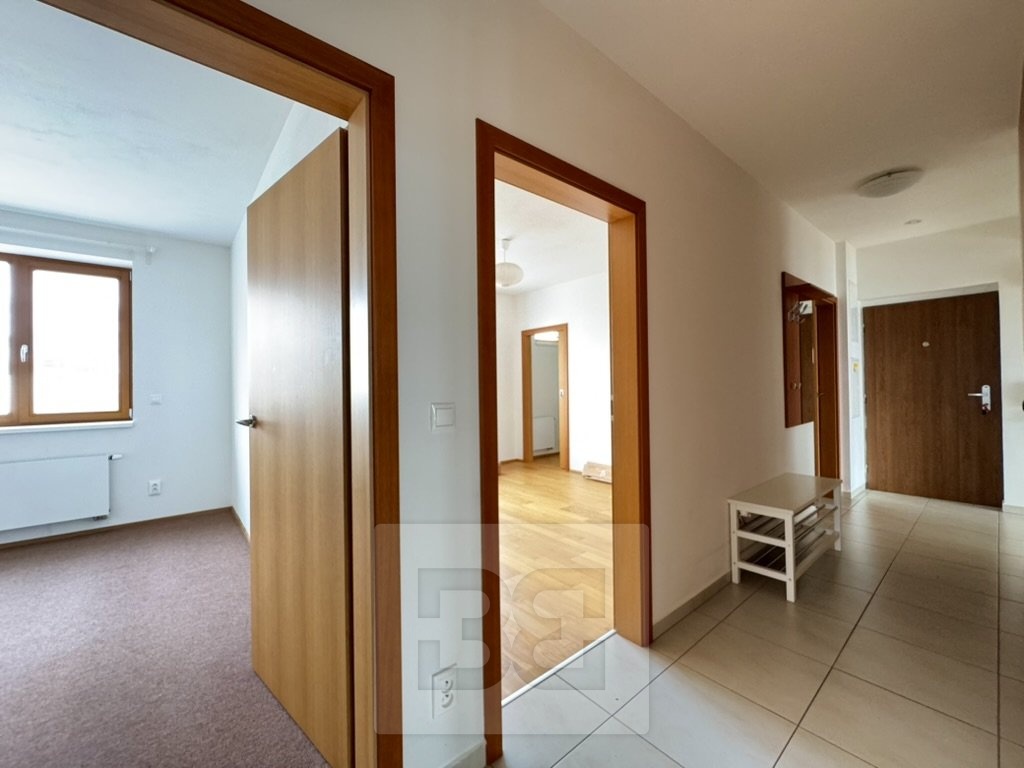Pronájem prostorného bytu s terasou a garážovým stáním - Brno, Sadová, ul. Jarmily Kurandové Nabízíme k pronájmu nádherný a nadstandardně prostorný byt v jedné z nejžádanějších brněnských lokalit - Sadová, ulice Jarmily Kurandové. Jedná se o typ bytu, který se na trhu objevuje jen velmi zřídka. Kombinuje velkorysý prostor, kompletní vybavení a dechberoucí výhled na město. Dominantou bytu je obrovský obývací pokoj s kuchyňským koutem, který je plně vybaven nábytkem na míru - knihovna, TV stěna, TV stolek, rozkládací gauč a jídelní stůl. Součástí je také kompletně vybavená kuchyňská linka. Z obývacího pokoje je přímý vstup na prostornou terasu, která nabízí krásný panoramatický výhled na celé Brno. Všechna okna jsou navíc vybavena předokenními roletami pro maximální komfort. Byt nabízí velmi praktické dispoziční řešení: • prostorná předsíň s vestavěnými skříněmi na míru, • samostatná komora, která plnohodnotně nahrazuje sklep, • dva dětské pokoje, z nichž jeden má vlastní šatnu, • rodičovská ložnice vybavená postelí a vestavěnou skříní, • dvě koupelny - jedna s vanou, druhá se sprchovým koutem, K bytu náleží garážové stání přímo v domě, což výrazně zvyšuje komfort bydlení. Velkou výhodou je také samotná lokalita Sadová, která patří mezi moderní a klidné rezidenční čtvrti Brna s výbornou dostupností do centra města i do přírody. Přímo pod domem se nachází supermarket Albert, v okolí je kompletní občanská vybavenost, zastávky MHD a rychlé napojení na centrum Brna i na městský okruh. Byt je ideální pro rodinu, která hledá komfortní bydlení ve velkorysém prostoru s krásným výhledem. Cena nájmu: 34.990 Kč / měsíc Zálohy na služby: cca 7.000 Kč / měsíc Kauce: ve výši jednoho nájmu Provize RK: jeden nájem + DPH K dispozici ihned.