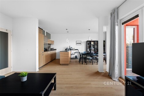 Součástí bytu je vlastní garážové stání, které je zahrnuto v kupní ceně. Bytová jednotka sestává z: Spodní podlaží: Obývací pokoj s kuchyňským koutem…