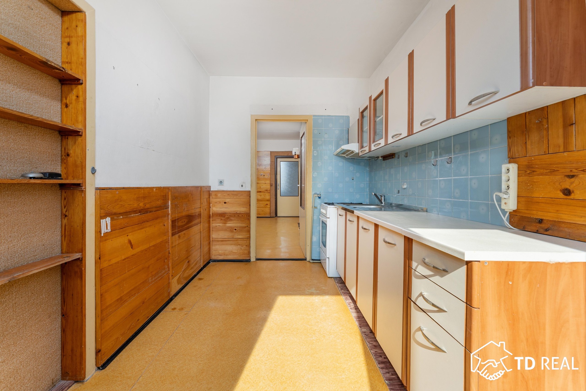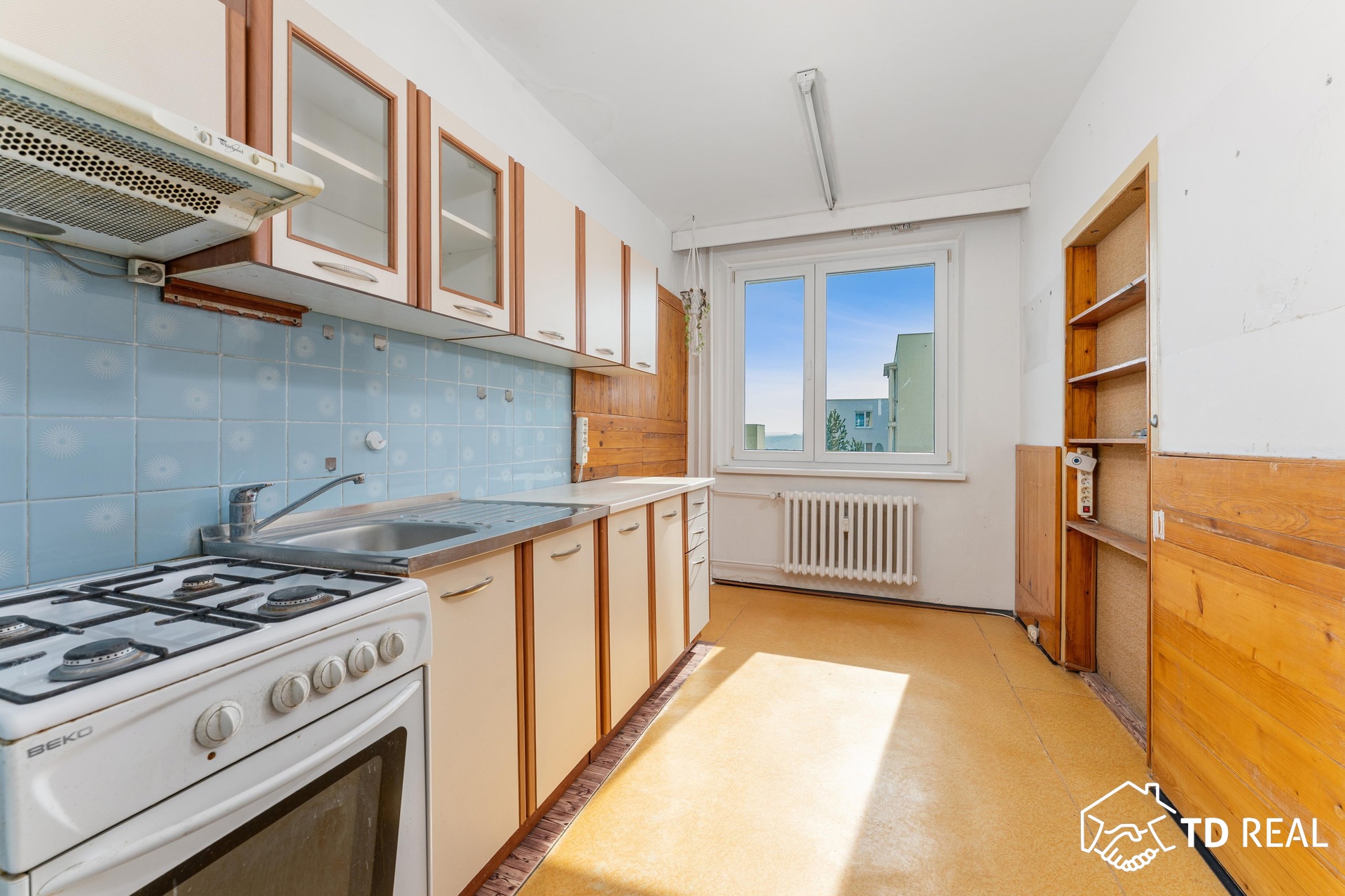 Nabízíme Vám ve výhradním zastoupení majitele ke koupi byt 3+1 v osobním vlastnictví, v městské části Brno - Starý Lískovec, ulice Labská. Bytová jednotka se nachází v patém patře bytového domu s výtahem, plocha bytu je 68m2 + příslušenství lodžie 4,4m2 a 2m2 sklepní kóje. Dispozice bytu: vstupní chodba se vstupy do všech místností - obývací pokoj (17,35m2), ložnice (11,88m2), dětský pokoj (7,67m2), kuchyně dále koupelny, toaleta je zvlášť. Velkou výhodnou jsou 3 komory, které jsou součástí bytové jednotky. K dispozici je sklepní kóje a lodžie se vstupem z obývacího pokoje. Bytová jednotka je v původním stavu, umakartové jádro a je určena k modernizaci. Byt nabízí promyšlenou a funkční dispozici, která poskytuje dostatek prostoru pro pohodlné bydlení. Ve Starém Lískovci se nachází veškerá občanská vybavenost, včetně mnoha hřišť, v blízkosti bytu se nachází zastávky MHD, obchody, restaurace, kavárny, Fakultní nemocnice Bohunice, OC Campus Square, univerzitní kampus.