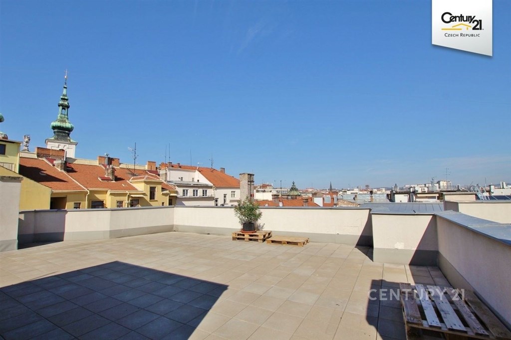 Nabízíme Vám krásný střešní byt v centru Brna na ulici Panská 12. Byt má dispozici 3+kk a rozměr 103 m2 vnitřní plochy a střešní terasa 40 m2. Byt je volný od 01.05.2026 Byt má prostornou vstupní chodbu odkud je vstup do koupelny, na samostatnou toaletu, do dvou samostatných ložnic a do obývacího pokoje s kuchyní. Kuchyně je vybavena lednicí, myčkou, el. varnou deskou, horkovzdušnou troubou a digestoří. Obě ložnice jsou směřovány do vnitrobloku. Obytný prostor má více úrovní. Jeden je kuchyňský, druhý jídelní u velkého francouzského okna s výhledem na starou radnici a Petrov a třetí prostor je obývací pokoj se schodištěm na terasu. K nájmu je nutné připočíst služby v paušálu ve výši 3,588 Kč/ 2 osoby ( vč. DPH). Plyn a elektřina se přepisují na nájemce v hodnotě záloh 4,000 Kč. Fixní služby obsahují odpady, el. společných prostor, výtahy, úklidy, vodné a stočné do výše 40 m3/os./měsíc. Kauce se platí dva nájmy a služby 71,176 Kč. Provize pro RK jeden nájem se službami + 21% DPH 43,062 Kč. Byt se pronajímá nezařízený. V bytě může být trvalý pobyt a domácí mazlíček. Pro více informací kontaktujte makléře Petra Vyskočila.