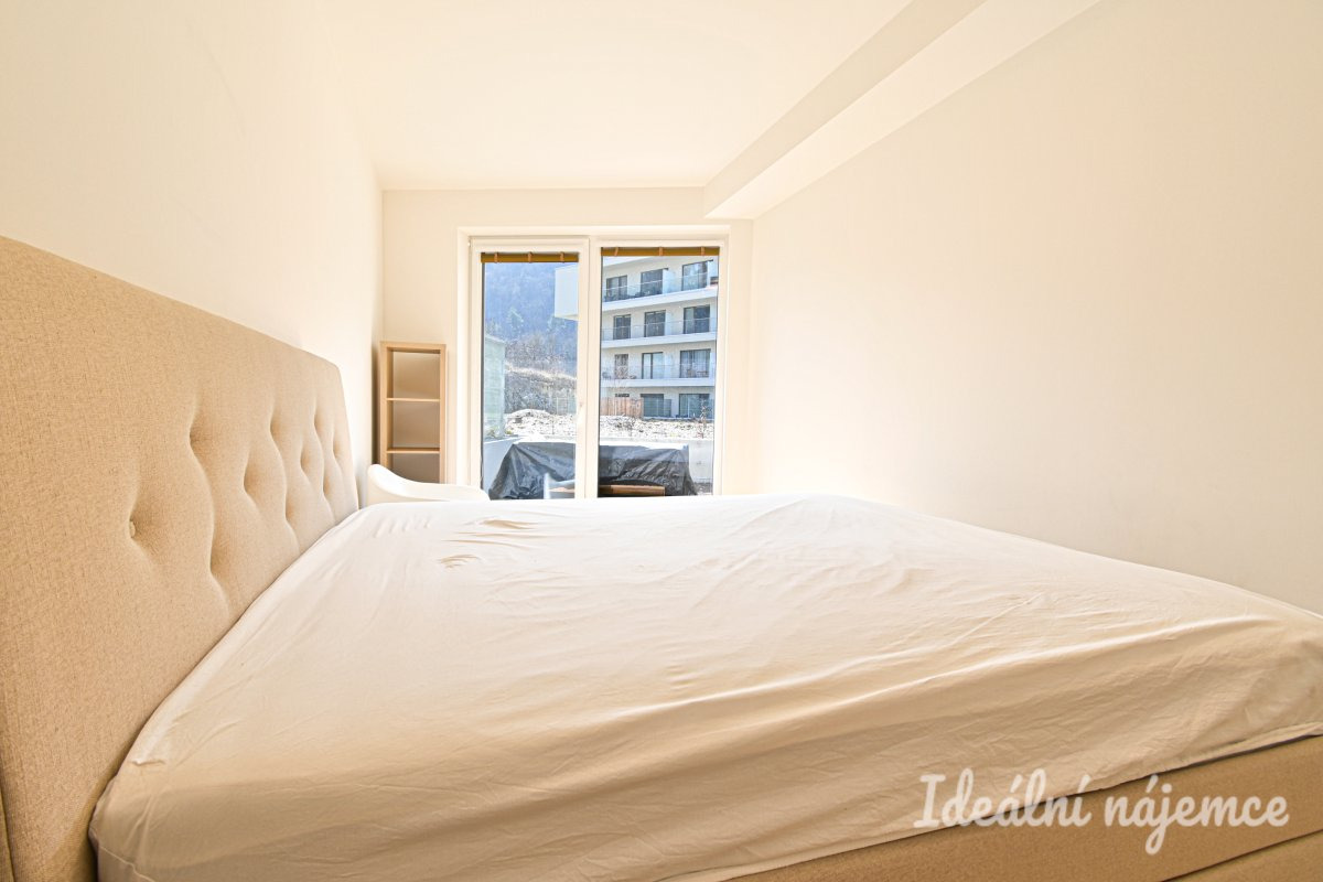 K dlouhodobému podnájmu nabízíme byt o dispozici 2+kk v oblíbené lokalitě Brno - Komín. Byt o celkové výměře 57 m2 se nachází v 1. podlaží moderního domu s výtahem. K bytu náleží prostorná terasa, která nabízí příjemné posezení s výhledem do okolí. Byt se nabízí vybavený dle fotografií. Kuchyně disponuje lednicí, myčkou, elektrickou troubou, varnou deskou a digestoří. Obývací část je propojena s kuchyní a nabízí dostatek prostoru pro pohodlné bydlení i odpočinek. Ložnice je vybavena postelí a úložným prostorem. V koupelně najdeme sprchový kout, umyvadlo a toaletu, k dispozici je také pračka. Velkým benefitem je parkovací stání, které je již zahrnuto v ceně nájmu. K dispozici je také kolárna. V okolí najdeme Brněnskou přehradu, lesy i množství možností pro sport a relax. Zároveň je zde kompletní občanská vybavenost - restaurace, supermarket, lékárna i zastávky MHD s dobrou dostupností do centra. Byt je volný k nastěhování dle domluvy.