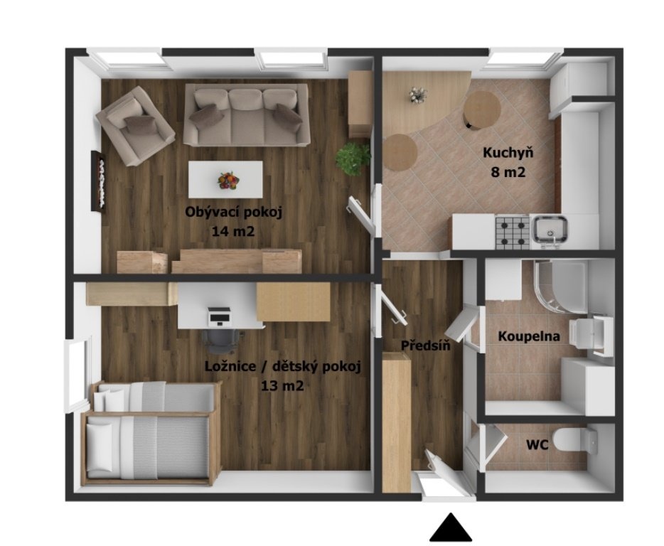 Prodej bytu 2+kk 45,9 m2 s terasou 14,8 m2