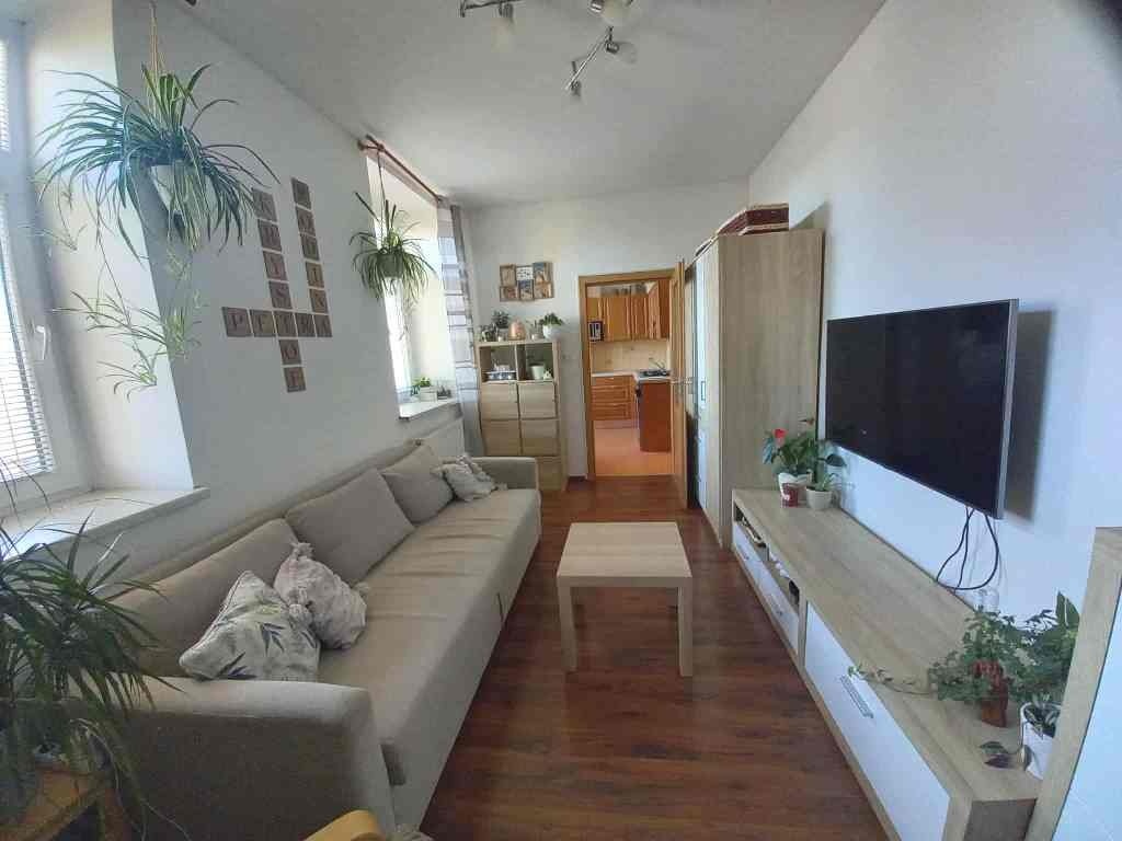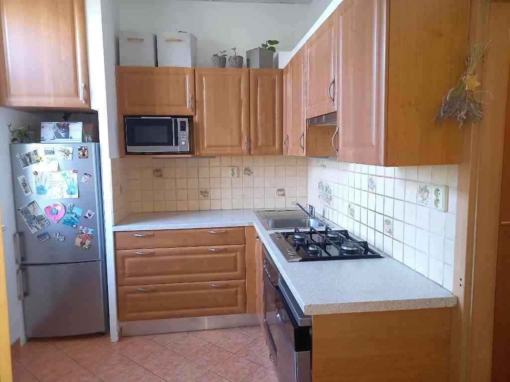 Prodej bytu v osobním vlastnictví, s parkovacím místem u domu, v klidném místě obce Hrušovany u Brna, na ul. Vodní. Obec Hrušovany u Brna se nachází přibližně 20 km jižně od Brna, je výborně dostupná autem, napojením na dálnici D2 nebo rychlostní silnici Brno - Mikulov (Vídeň), tak i veřejnou dopravou, do obce je zavedený IDS, spojení autobusem i vlakem - stanice přímo v Hrušovanech - cca 20 minut jízdy na brněnské hlavní nádraží. V obci je mateřská škola, základní škola, knihovna, sportovní centrum, sportovní areál, Sokol a další kluby a spolky. Obec má vlastní obecní úřad, kostel, hasičský sbor, v obci je i několik restaurací, další obchody a služby jsou pak k dispozici v navazujícím městě Židlochovice. Nabízený byt se nachází ve 2.nadzemním podlaží (1. patře), v celkem třípodlažním cihlovém domě bez výtahu. Součástí nabídky je i přenechání nájmu parkovacího místa u domu, na obecním pozemku, za které nájemce hradí obci 3.000,-Kč ročně. Byt má celkovou plochu 46,3 m2, obývací pokoj je velký 14 m2, navazující na kuchyni o velikosti 8 m2, ložnice/dětský pokoj je velký 13 m2. Ostatní plochu tvoří předsíň s vestavěnou šatní skříní, koupelna a WC. K bytu náleží sklepní kóje v suterénu domu. Byt prošel před 15 lety celkovou rekonstrukcí, zahrnující nové rozvody inženýrských sítí, pořízení nové kuchyňské linky se spotřebiči, pořízení nového kotle, včetně rozvodů a radiátorů, rekonstrukci koupelny, položení nových podlah v bytě a výměnu interiérových dveří. Byt je vytápěný vlastním plynovým kombinovaným kotlem, zajišťujícím současně i ohřev vody. V domě byla v r.2017 provedená výměna stoupacího vedení a rozvodů vody a odpadů, letos došlo k opravě vchodových dveří, provizorní opravě schodů, na rok 2026 je plánované dokončení opravy schodů - položení dlažby a pokračování v přípravě k sanaci domu, výhledově je pak plánovaná pokládka dlažby v 1 a 2 patře. Dům má na opravy naspořené finanční prostředky ve fondu oprav. Obyvatelé domu mají k dispozici i zatravněný prostor ve dvorním traktu domu, kde je možnost posezení a volnočasového vyžití pro děti. Měsíční náklady, spojené s užíváním bytu: 3.240,-Kč (spotřeba vody, fond oprav, správa s provozní náklady na dům) + elektřina a plyn
