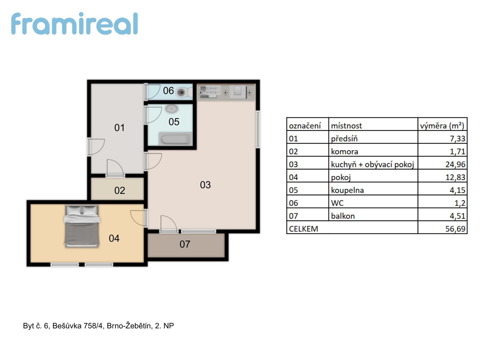 Byt je situovaný v klidné a vyhledávané lokalitě Brno-Žebětín, na ulici Bešůvka. Nachází se ve 2. nadzemním podlaží moderního bytového domu a díky nárožní orientaci na jih je krásně prosvětlený po celý den. K bytu náleží i parkovací stání přímo u domu v hodnotě 200 000 Kč, které je součástí prodeje - což je v této oblasti výrazná výhoda. Byt potěší svou úsporností - celkové měsíční náklady se pohybují okolo 3 000 Kč při dvoučlenné domácnosti. Velkou předností Žebětína je jeho zasazení do zeleně - okolní lesy a rybník přirozeně ochlazují prostředí, takže je zde v létě znatelně příjemněji než v přehřátém centru města. Zároveň nabízí skvělé možnosti pro aktivní odpočinek - cyklostezky, stezky zdraví i relaxaci u Žebětínského rybníka. Přitom je centrum Brna pohodlně dostupné MHD do 20 minut. V místě je kompletní občanská vybavenost - školka, škola, obchody, restaurace i sportovní zařízení. Dispozičně je byt velmi dobře řešen - obývací pokoj s kuchyňským koutem je propojený s balkonem orientovaným do klidné části a nabízí příjemný prostor pro odpočinek i společné chvíle. Ložnice je oddělená, koupelna disponuje vanou, WC je samostatné. Nechybí ani praktická komora přímo v bytě, ideální pro uložení sezónních věcí, sportovního vybavení nebo jako menší domácí sklad. Komfort bydlení zvyšuje také instalovaná klimatizace, která zajišťuje příjemné teploty i během horkých letních dní. Byt je ve velmi dobrém stavu, připravený k okamžitému nastěhování bez dalších investic. Vhodný pro vlastní bydlení i jako výhodná investice k pronájmu. Cena za byt: 6 890 000 včetně parkovacího stání Provize RK: 200.000,- Kč Budeme se těšit na osobní prohlídce.