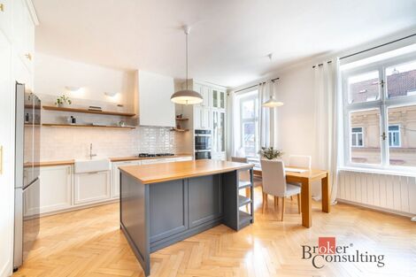 Nabízíme k prodeji exkluzivní, kompletně zrekonstruovaný a klimatizovaný byt o dispozici 4+kk s celkovou výměrou 115 m a terasou o velikosti 10 m, situovaný v centru Brna. Nemovitost zaujme především svou mimořádnou světlostí, vzdušností a krásně sladěným interiérem, který propojuje moderní prvky s nadčasovou elegancí. Celý byt se vyznačuje vysokými stropy a velkými okny ve všech místnostech, díky nimž je interiér přirozeně prosvětlený a působí velmi prostorně. Hlavní obytný prostor tvoří velkorysý obývací pokoj propojený s kuchyní vyrobenou na míru z masivu. Ta byla navržena s důrazem na detail i celkovou harmonii interiéru a je vybavena kvalitními značkovými spotřebiči Miele. Byt nabízí několik samostatných pokojů, včetně dětského pokoje s kvalitní podlahovou krytinou a vytápěním. Celkový charakter interiéru dotvářejí dřevěné parkety, které prostoru dodávají teplo a eleganci. Zároveň je k dispozici útulná terasa, která nabízí příjemné místo pro ranní kávu či večerní odpočinek a přirozeně rozšiřuje obytný komfort bytu. Nemovitost prošla kompletní rekonstrukcí s důrazem na kvalitní materiály a precizní zpracování. Samozřejmostí je klimatizace, která zajišťuje komfortní bydlení po celý rok. Lokalita v samotném centru Brna patří mezi nejvyhledávanější v docházkové vzdálenosti je veškerá občanská vybavenost, restaurace, kavárny i kulturní vyžití, stejně jako výborná dopravní dostupnost. Jedná se o mimořádnou nabídku pro ty, kteří hledají stylové a komfortní bydlení v atraktivní lokalitě s jedinečnou atmosférou. Pro více informací nebo sjednání prohlídky nás neváhejte kontaktovat. <a href="https://www.eurobydleni.cz/komercni-nemovitosti/obchodni-prostor/ostrava/obec-ostrava/prodej/"><strong>Prodej obchodních prostor Ostrava</strong></a>