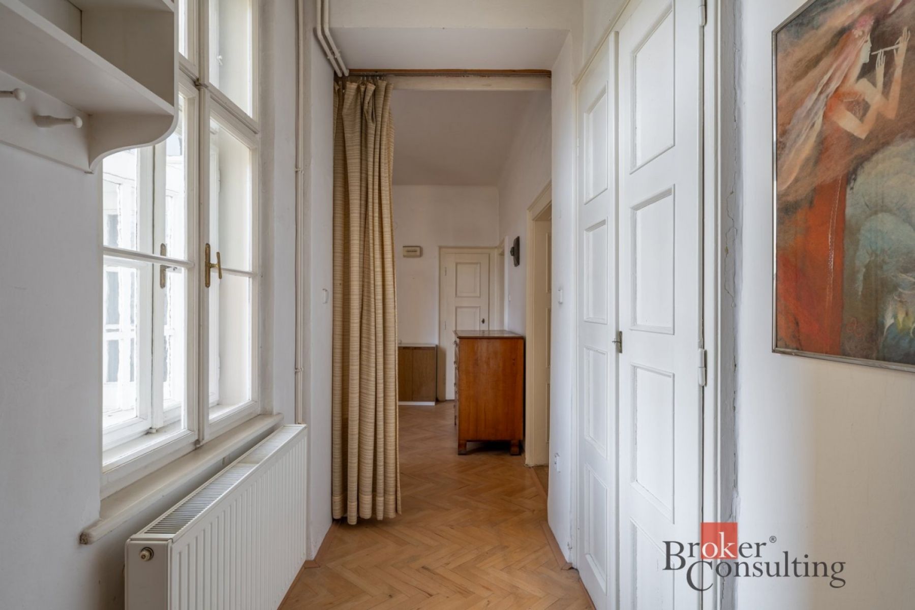 Výjimečná příležitost vlastnit velkorysý byt 3+1 o rozloze 127,9 m v osobním vlastnictví. Byt se nachází ve 4. patře historického domu s výtahem na vyhlášené adrese Čápkova, Brno Veveří. Dům byl částečně zrekonstruován v roce 2015. Dispozice zahrnuje 3 průchozí pokoje o velikostech 25,4 m, 25,6 m a 24,4 m. Prostřední pokoj nabízí balkón (3,3 m) s orientací na západ do ulice. Kuchyně (11,7 m) plynule navazuje na jídelnu (4,8 m) a praktickou spíž (2,2 m). Na východní stranu do klidného vnitrobloku směřuje lodžie (2,9 m), koupelna (11,2 m) a samostatné WC (1,5 m). Srdcem bytu je impozantní předsíň o rozloze 17,9 m s komorou (3,2 m) a prostornou vestavěnou skříní, která propojuje pokoje s kuchyní. Součástí je i sklepní kóje o výměře 8,1 m. Byt si zachoval svůj původní charakter kazetová okna, krásné parkety a velkorysé 3 metrové stropy. Je udržovaný a ihned připravený k nastěhování. Nemovitost ocení jak ti, kdo hledají kvalitní vlastní bydlení, tak investoři jedná se o jednu z nejatraktivnějších adres v Brně. Poloha mluví za vše: do centra města dojdete pěšky za 5 minut, MHD přímo na dosah. <a href="https://www.eurobydleni.cz/byty/1_1/karlovy-vary/obec-karlovy-vary/pronajem/"><strong>Pronájem bytu 1+1 Karlovy Vary</strong></a>