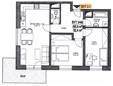 Prodej prostorného bytu 3+kk, 80 m s terasou - Sadová