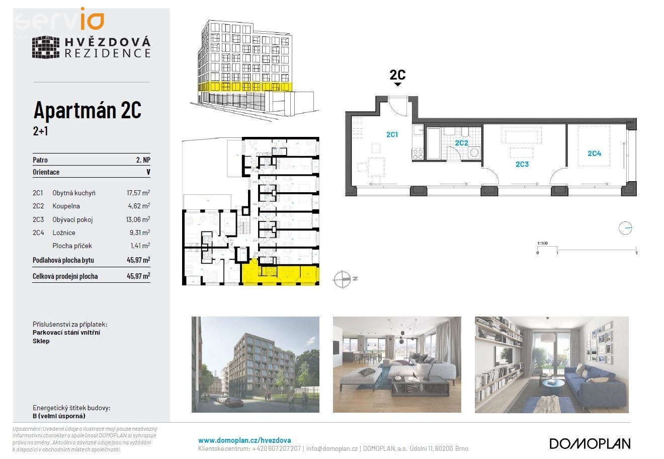 Nabízíme exkluzivně pronájem bytu 2+1 o velikosti 45,97 m2 se sklepem a možností pronájmu krytého PS v objektu Rezidence Hvězdová, polyfunkční dům obklopený městským parkem, odkud je to na brněnské náměstí Svobody procházkou deset minut. Rezidence Hvězdová jedinečně kombinuje všechny ingredience moderního městského bydlení. Celá čtvrť navíc aktuálně prochází výraznou proměnou - v přímém sousedství vzniká nové komunitní a kulturní centrum, plánují se originální rezidenční komplexy jako např. Pekárenský dvůr, jejichž součástí bude městská zahrada i pestrá škála služeb. Díky přísně geometrické fasádě a promyšlené dispozici má každá jednotka alespoň jednu plně prosklenou stěnu, díky čemuž mizí hranice mezi apartmánem a jeho okolím. Architekt Roman Gale zároveň na plášť domu navrhl speciální řešení omítky v zajímavém lávovém designu, která bude první podobnou realizací v Brně. Rezidence Hvězdová se také stala realitním projektem roku 2020 pro Jihomoravský kraj. Součástí jednotky je moderně vybavená koupelna (sprcha nebo vana, WC, umyvadlo, galerka se zrcadlem, věšáky, pračka), kompletní KL včetně spotřebičů (myčka, trouba, sporák), vinylová podlaha, jídelní stůl a židle, možnost dovybavení postelí (jednolůžko, dvojlůžko), předsíňový nábytkový program, a další vybavení dle domluvy s majitelem. Ke každému bytu náleží sklep. Objekt bude zabezpečen kamerovým systémem. Volné ihned, možnost pronájmu krytého PS za poplatek 2.000,-Kč/měs + DPH. Maximální počet osob 2. Cena nájmu činí 18.000,- Kč/měs., + služby a veškeré energie 5.000,- Kč/měs. Kauce ve výši jednoho měsíčního nájmu. V případě zájmu jsou možné prohlídky kdykoliv po domluvě.