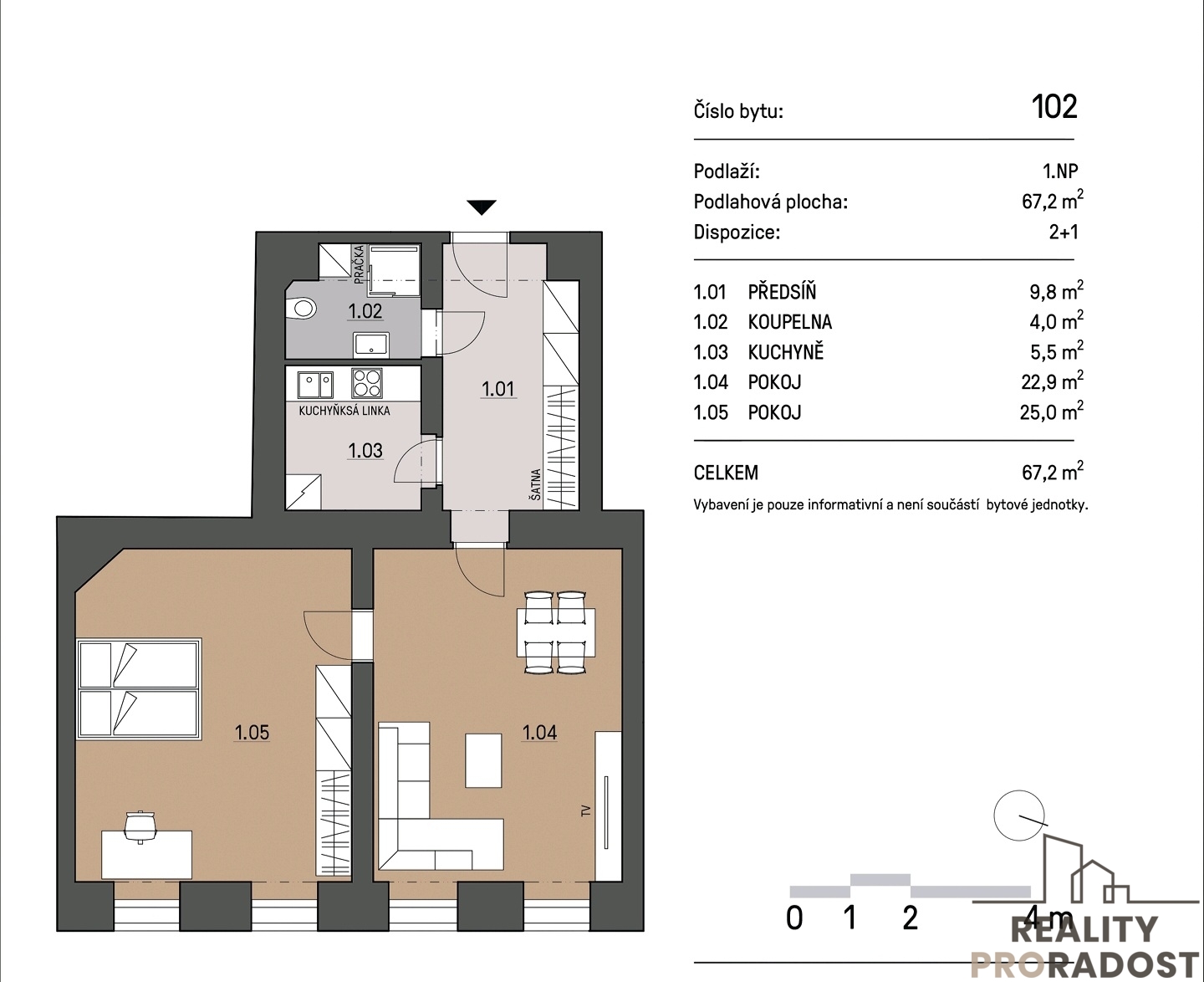 Pronájem bytu 2+1, Veselá, Město Brno, 18000 Kč/měs, 52 m2