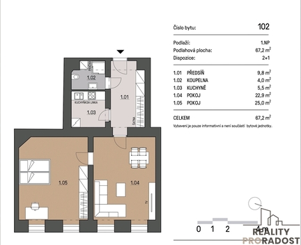 Pronájem, byt 2+1, CP 70m2, parkovací stání, ul. Kotkova, Brno - Černovice