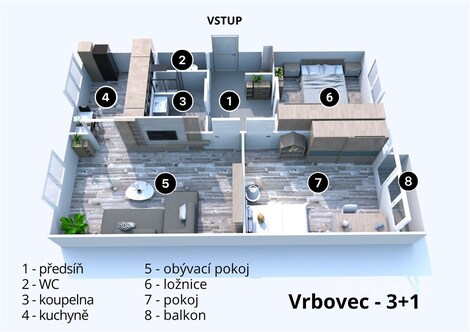 Hledáte bydlení v obci s kompletní občanskou vybaveností a zároveň s rychlou dostupností do Znojma? V zastoupení majitele nabízíme k prodeji byt o dispozici 3+1 ve Vrbovci, odkud se autem dostanete do Znojma přibližně za 10 minut. Byt je v osobním vlastnictví a nachází se ve 4. nadzemním podlaží z celkových 5 podlaží panelového domu bez výtahu. Celková plocha bytu činí 73,53 m2, dále k němu náleží balkon o výměře 2,43 m2 a sklep o velikosti 4 m2. Dispozice 3+1 poskytuje dostatek prostoru pro rodinu, pár i pro ty, kteří ocení samostatné pokoje a praktické uspořádání. Parkování je možné na veřejném parkovišti přímo před domem. Byt se nachází v domě po revitalizaci, v rámci které byla vyměněna okna za plastová, provedeno zateplení domu, nová fasáda a nové vstupní vchodové dveře. Díky těmto úpravám jsou velkou výhodou také velmi nízké náklady na bydlení. Byt je částečně zrekonstruovaný a jednou z provedených úprav je zděné bytové jádro. Velkou předností této nabídky je i samotná obec Vrbovec. Najdete zde mateřskou i základní školu do 9. třídy, obchod, poštu, lékaře, koupaliště, dětské hřiště a fotbalové hřiště. Samozřejmostí je také velmi dobré autobusové spojení do Znojma a okolních vesnic. Tato nabídka je vhodná pro ty, kteří hledají prostorné bydlení v obci se službami a dobrou dostupností do města. Byt je volný dle dohody. Pro více informací nebo sjednání prohlídky mě neváhejte kontaktovat.