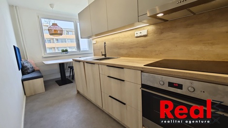 Nabízíme pronájem velmi pěkného bytu 2+1 po kompletní rekonstrukci, ulice Chodská, Brno - Královo Pole. CP bytu je 56 m2 + lodžie, 7. NP/9, panelový dům po kompletní revitalizaci s výtahem. V bytě jsou nové PVC, koberce a dlažba, zděné koupelnové jádro se sprchovým koutem, nová KL včetně vestavěné el. trouby, sklokeramické varné desky, odsavače par a myčky na nádobí + samostatně stojící lednička s mrazákem, plastová okna, nové rozvody vody, elektřiny a odpadu, vymalováno atp.. Byt je dále vybaven jídelním stolem vč. židlí a prostorná šatní skříň v jednom pokoji. Dispozice bytu: neprůchozí pokoje 16m2 a 14m2, kuchyň s jídelním koutem, předsíň, koupelna se sprchovým koutem, samostatné WC s umyvadlem, prostorná šatna přístupná z chodby (umístěna mezi pokoji), prostorná lodžie, sklep v 1.NP. Bytový dům je situovaný v klidné části města se snadnou dostupností do centra města, kompletní občanská vybavenost, obchody, služby atd. Majitel požaduje vratnou kauci. Volné ihned.