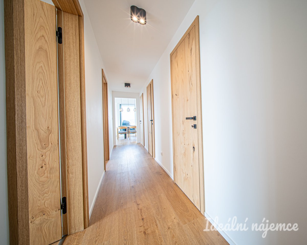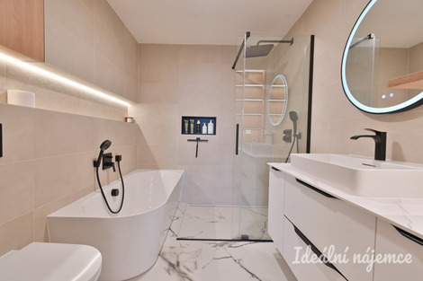 K dlouhodobému podnájmu nabízíme nadstandardní byt o dispozici 3+kk v atraktivní lokalitě Brno - Černá Pole, na ulici třída Generála Píky. Byt o celkové výměře 91 m2 se nachází ve 4. podlaží novostavby s výtahem a nabízí komfortní bydlení s důrazem na prostor, světlo a kvalitní provedení. Byt se nabízí plně vybavený dle fotografií, veškeré vybavení je řešeno na míru a zajišťuje maximální využití prostoru i jednotný moderní design. Dominantou je prostorný obývací pokoj s kuchyňským koutem a přímým vstupem na venkovní prostory. Byt disponuje dvěma balkony a jednou terasou, která poskytují příjemný výhled do okolí. Kuchyňská linka je vybavena všemi spotřebiči. Ložnice i další pokoj nabízí dostatek úložného prostoru. Koupelna je moderně řešená s vanou i sprchovým koutem. Samozřejmostí jsou venkovní žaluzie. Velkým benefitem je také terasa, na které se nachází gril a venkovní nábytek, ideální pro relaxaci i posezení s přáteli. Parkovací stání je již zahrnuto v ceně nájmu. Lokalita Černá Pole patří dlouhodobě mezi nejoblíbenější části Brna. Nabízí klidné bydlení v blízkosti centra, zároveň ale dostatek zeleně a prostoru pro volnočasové aktivity. V docházkové vzdálenosti se nachází park Lužánky, obchody, kavárny, restaurace i veškerá občanská vybavenost. Výborná je také dopravní dostupnost - tramvajová zastávka vedle domu a do centra se dostanete během několika minut. V komplexu je také anglická školka. Byt je ideální volbou pro náročnější klienty, kteří hledají moderní, nadstandardní bydlení v kvalitní lokalitě s výbornou dostupností.