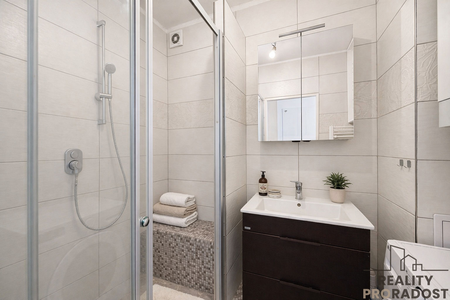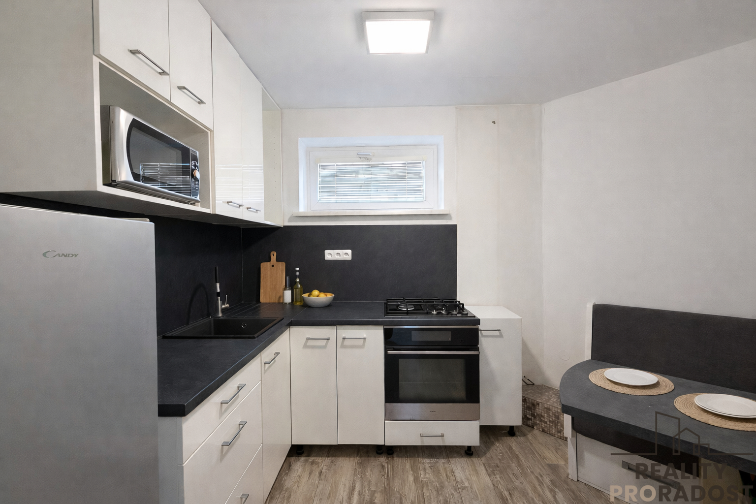 Nabízíme k prodeji byt o dispozici 2+1 a výměře 58 m2, situovaný v přízemí cihlového domu (kolaudace 1997) v klidné části Brno-Líšeň, v bezprostřední blízkosti přírody. Byt nabízí příjemné bydlení s výhledem do zeleně a velkou výhodou je vlastní vytápění plynovým kotlem - máte tak plnou kontrolu nad náklady. Dispozice zahrnuje prostorný obývací pokoj, samostatný dětský pokoj a kuchyň s moderní linkou včetně spotřebičů a jídelního kouta. Koupelna se sprchovým koutem, WC samostatné. K bytu náleží sklepní kóje (1,3 m2) na stejném podlaží. Parkování je možné přímo před domem nebo na velkém parkovišti z ulice Novolíšeňská. Velkým benefitem je schválený projekt předzahrádky o ploše 34 m2 s možností oplocení - ideální pro vytvoření soukromého venkovního prostoru. Byt se prodává včetně vybavení: kuchyňská linka se spotřebiči, vestavěné skříně, klimatizace, dětský nábytek a jídelní sestava. Výborná lokalita: park Rokle (200 m), školy, školky, obchody (Albert, Lidl) v docházkové vzdálenosti. Do centra Brna cca 20 minut tramvají. PENB je v procesu vyhotovení, proto uvadíme hodnotu G.