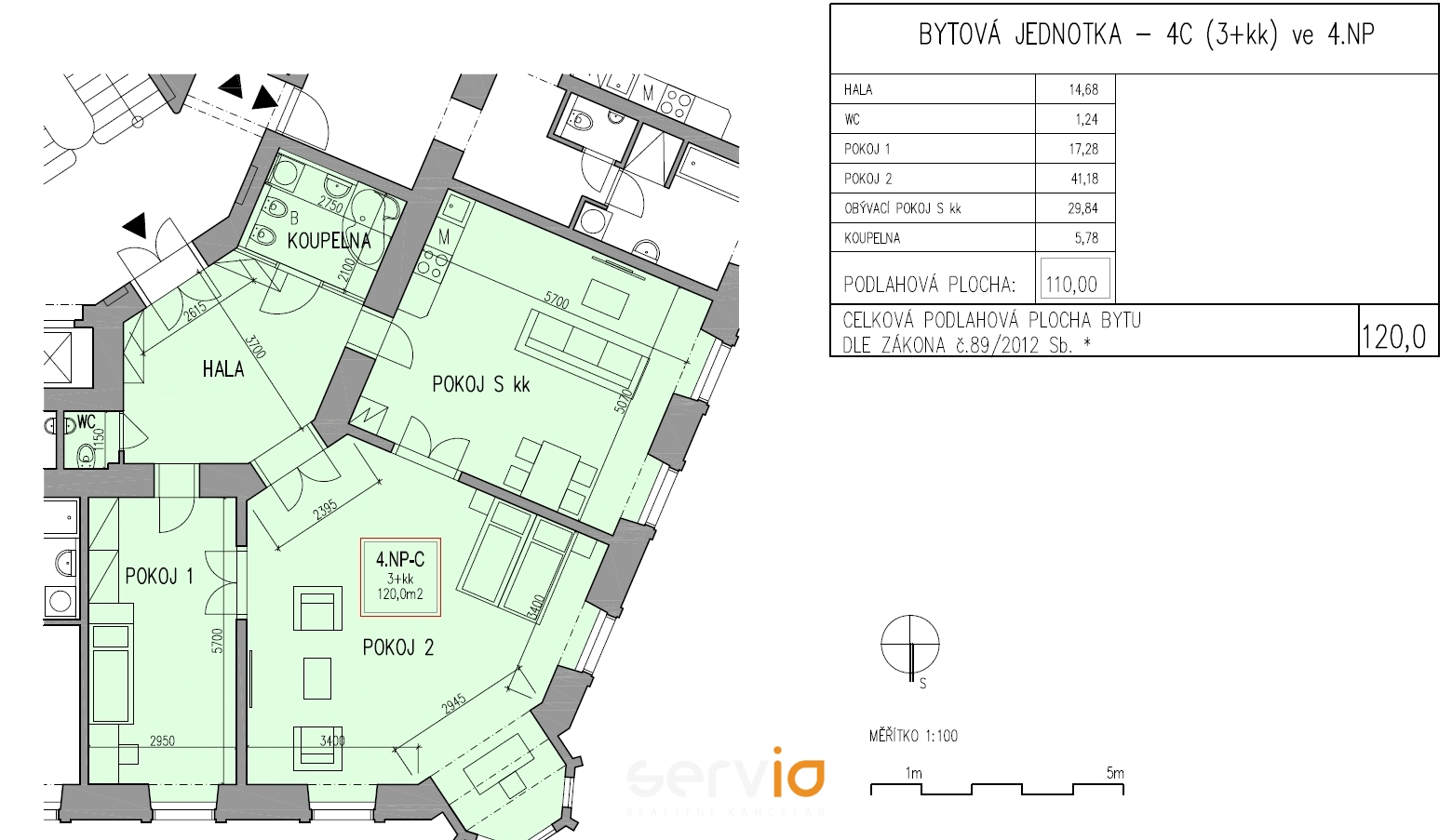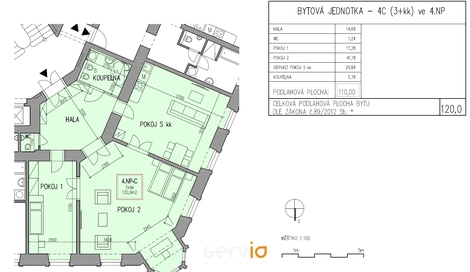 Nabízíme k pronájmu byt 3+kk o rozloze 119,7 m2 ve 3. patře domu na rohu ulic Kobližná/Novobranská, v historickém centru Brna. Jedná se o nejhezčí secesní rohový byt v domě, který byl v roce 2016 kompletně zrekonstruován. Byt má dvě WC (+bidet), původní křišťálové lustry, na podlaze velkoformátovou dlažbu, původní repasované vstupní dveře a krb (tento je jen dekorativní a není možné jej užívat) a je vybaven kuchyňskou linkou s led osvětlením, ve které je nainstalovaná vestavná el. trouba, sklokeramická varná deska, myčka nádobí a digestoř s tukovým filtrem a dvěma uhlíkovými filtry. Dále je součástí vybavení bytu lednice. V místnosti sociálního zázemí je vyjma WC a bidetu rohová vana, umyvadlo se spodní a horní skříňkou s led osvětlením a vývod na pračku. Předmětem nájmu je i nově vybudovaný sklep o rozloze cca 6 m2 v 1. PP domu. V zálohách jsou veškeré služby i veškeré energie včetně el. energie, vytápění, které je nově vybudovanou plynovou kotelnou pro celý dům, vodného a stočného, spotřeba el. energie a úklid společných prostor, servis a údržba výtahu atp. Nájemce tedy nemusí uzavírat smlouvu na dodávku el. energie, plynu, vodného a stočného ani dalších služeb a energií. V zálohách není pouze zahrnut internet, ale internetové rozvody jsou již v domě instalovány. Byt bude volný k pronájmu s účinností od 1.6.2026, eventuálně po dohodě se stávajícím nájemcem i v jiném termínu. Měsíční nájemné 28.458,- Kč, měsíční zálohy za služby a veškeré energie 5.500,- Kč včetně DPH. Celkový měsíční předpis 33.958,- Kč. Provize RK 1 nájemné (28.458,- Kč + DPH). Ve věci prohlídky nás neváhejte kontaktovat.